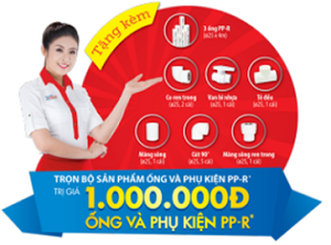 - Tăng kèm bộ phụ kiện chịu nhiệt PPR trị giá 1.000.000đ