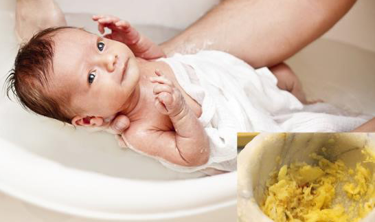 Tắm nước ấm kết hợp với gừng tươi giúp trẻ hết rôm sảy